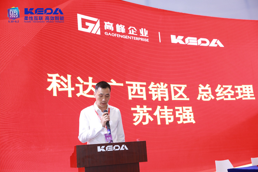 廣西高峰總經理柳嘉達在致辭中表示:“高峰企業(yè)秉承匠心制造,堅持‘顧客至上、質量第一、持續(xù)創(chuàng)新、追求卓越’的經營方針,把產品品質和創(chuàng)新當做企業(yè)的生命,選擇與陶機裝備龍頭科達合作,體現了高峰追求卓越,打造行業(yè)一流智能陶瓷整線的決心和信心,也是我們進行產品升級,高質量發(fā)展邁出的關鍵一步。今天在展會現場看到科達推出了這么多創(chuàng)新的產品,尤其是許多智能化數字化新品都代表了行業(yè)未來的發(fā)展方向,更加堅信了我們的選擇是正確的。相信與科達的合作能夠讓高峰企業(yè)再攀新高峰,再創(chuàng)新輝煌?!?/span>
