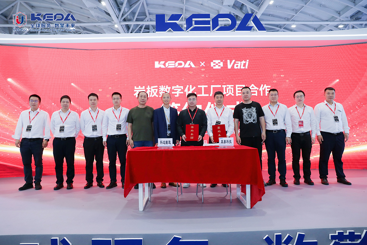 繼2024佛山潭洲陶瓷展首日科達與河南嘉北科技簽約啟動甄陶MOM3.0項目之后,科達陶機數(shù)字化業(yè)務再下一城,4月19日,科達陶機與湖南亞泰科技有限公司(以下簡稱“亞泰科技”)成功簽約,啟動了巖板數(shù)字化工廠項目。