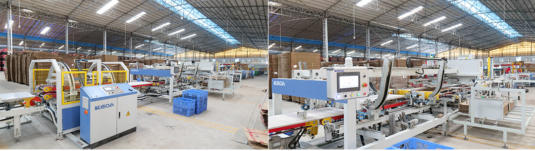 該包裝線采用了科達(dá)窯后整線統(tǒng)一的VI設(shè)計(jì),并優(yōu)化結(jié)構(gòu)布局,讓全線設(shè)備更簡潔易用。該線在兼容多種產(chǎn)品規(guī)格的同時(shí),具備一鍵式自動轉(zhuǎn)產(chǎn)的功能,告別了過去手工調(diào)整的繁瑣和低效,解決了客戶的轉(zhuǎn)產(chǎn)難題,輔以機(jī)器人自動碼包系統(tǒng),大大提高了生產(chǎn)效率。