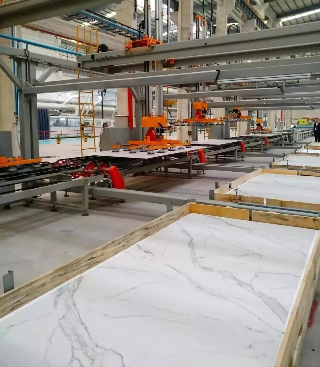 從巖板的生產(chǎn)制造來看,目前,既有全套引進(jìn)的意大利陶瓷大板(巖板)生產(chǎn)線,也有自主研發(fā)的國產(chǎn)陶瓷大板(巖板)生產(chǎn)線,尤其是恒力泰36000噸壓機(jī)的投產(chǎn),使國產(chǎn)巖板生產(chǎn)線成為現(xiàn)實(shí)。相信未來選擇國產(chǎn)裝備的巖板生產(chǎn)線會(huì)越來越多。與此同時(shí),相應(yīng)的寬體窯爐、釉線、噴墨打印機(jī)、拋光機(jī)、包裝機(jī)、自動(dòng)碼垛機(jī)等,都已配套成熟,基本上能夠像瓷磚生產(chǎn)一樣,實(shí)現(xiàn)全過程的自動(dòng)化,而非像某些人擔(dān)心的,一片巖板需要幾個(gè)員工抬著打包、入庫。