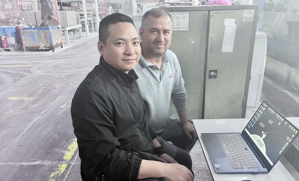 配件耗材服務(wù)人員正為外國客戶解決生產(chǎn)問題