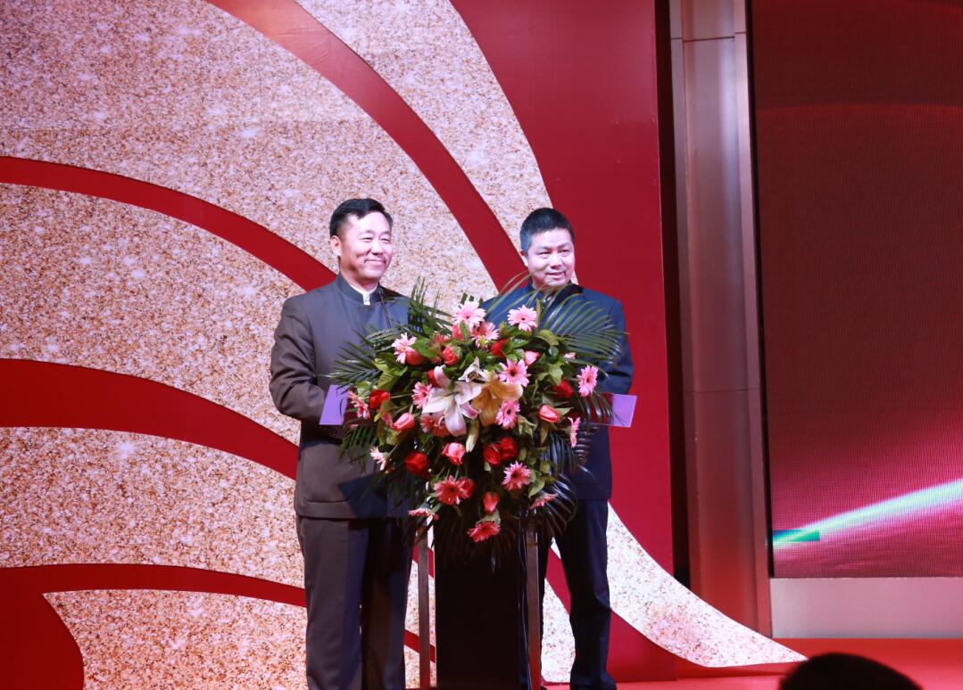 文藝表演開始前,晚宴由公司營銷總監(jiān)鐘琳和國際營銷總監(jiān)劉曉東中英雙語聯(lián)袂主持,為了表達對過往一年支持科達的國內(nèi)外客戶的誠摯謝意,科達向國內(nèi)前39名和海外前19名大客戶頒發(fā)了金色KD16008壓機,寓意大吉大利、昂首前行的祝愿。鐘總和劉總在致辭中表示,正如今年的展會主題“邁進大板時代,引領(lǐng)智慧整線”一樣,科達會不負時代使命,繼續(xù)引領(lǐng)行業(yè)創(chuàng)新,與各位攜手一起開創(chuàng)大時代!