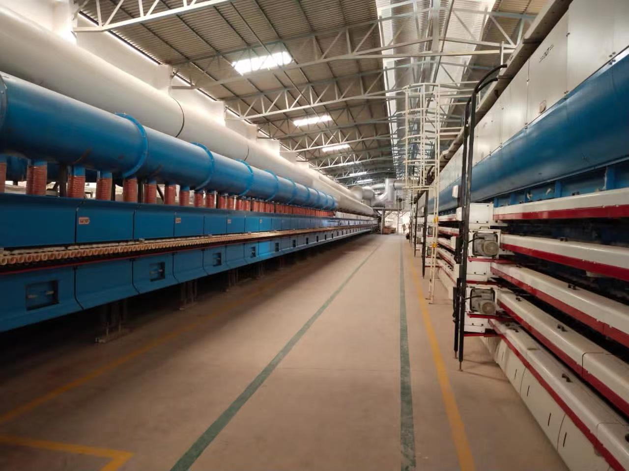 該窯配置了德力專利技術(shù)DHR高效接力回收冷卻余熱系統(tǒng)、OCE優(yōu)化燃燒節(jié)能系統(tǒng)。主要生產(chǎn)規(guī)格為600×600mm、600×1200mm,厚度9-11mm的全拋釉磚,日產(chǎn)能1.5萬m2。
