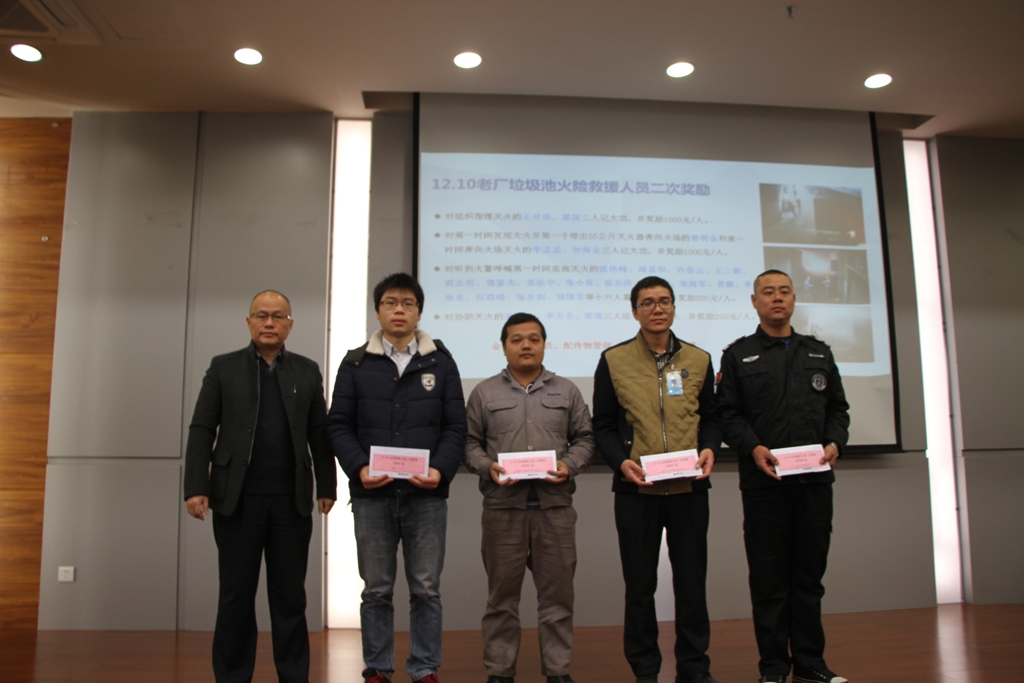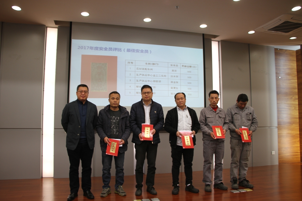 會(huì)上,公司安委會(huì)根據(jù)《公司安全工作考核激勵(lì)辦法》相關(guān)規(guī)定及2017年第四季度、2017年度安全工作考核結(jié)果,隆重表彰了在季度、年度安全工作優(yōu)秀單位和個(gè)人,生產(chǎn)供應(yīng)中心總經(jīng)理毛清、公司副總裁周鵬、陶瓷科技公司總經(jīng)理王德良、配件服務(wù)事業(yè)部總經(jīng)理隋旭東分別為獲得季度、年度安全獎(jiǎng)勵(lì)的單位和個(gè)人代表頒發(fā)錦旗(證書)和獎(jiǎng)金,石材公司董事長劉建軍為12.10火險(xiǎn)救援人員代表頒發(fā)了二次表彰獎(jiǎng)金。
