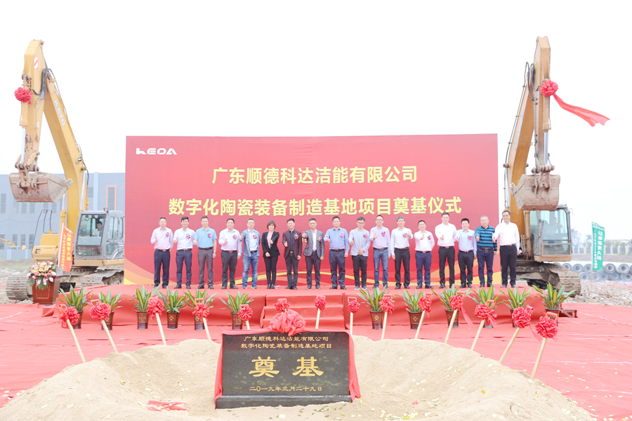 3月29日,廣東順德科達(dá)潔能有限公司“數(shù)字化陶瓷裝備制造基地項(xiàng)目”在順德區(qū)倫教街道世龍工業(yè)區(qū)舉行隆重的奠基儀式。順德區(qū)經(jīng)濟(jì)促進(jìn)局副局長曾利平、順德區(qū)科學(xué)技術(shù)局副局長吳慶強(qiáng)、佛山市自然資源局順德東部規(guī)劃管理局副局長賴鋒、倫教街道黨工委副書記王星海等順德區(qū)及倫教街道各級政府領(lǐng)導(dǎo),科達(dá)潔能總裁吳木海、副總裁周鵬,整線工程事業(yè)部總經(jīng)理陳水福,以及各施工、監(jiān)理單位、科達(dá)員工近100人一同見證了該項(xiàng)目的奠基儀式。