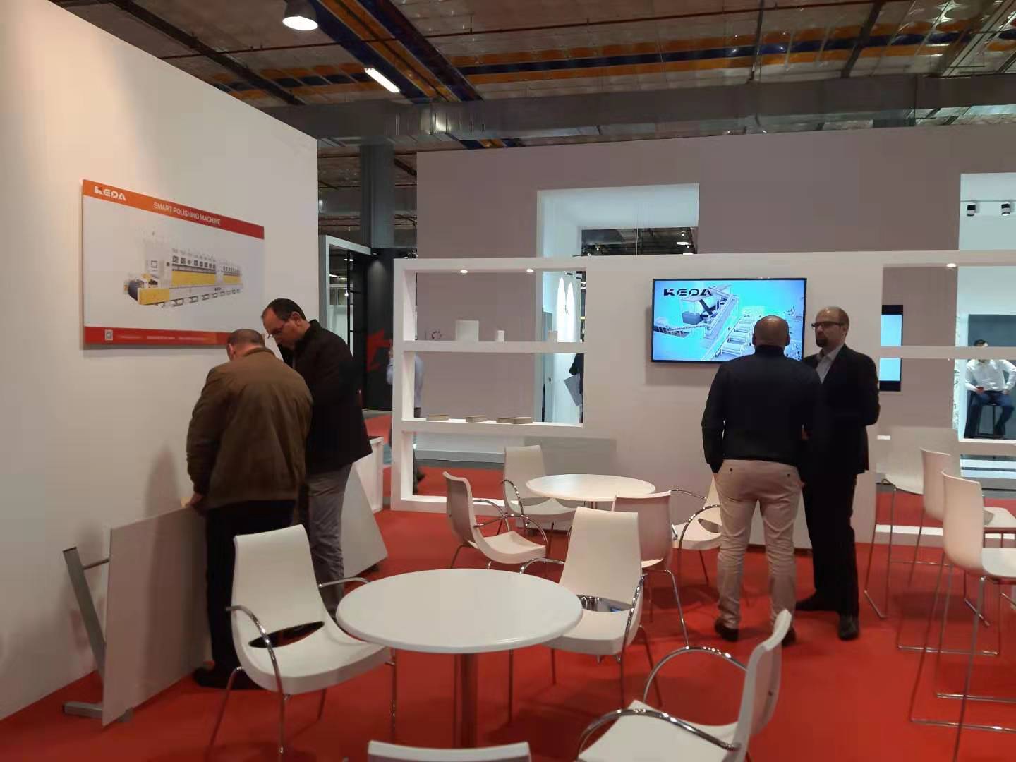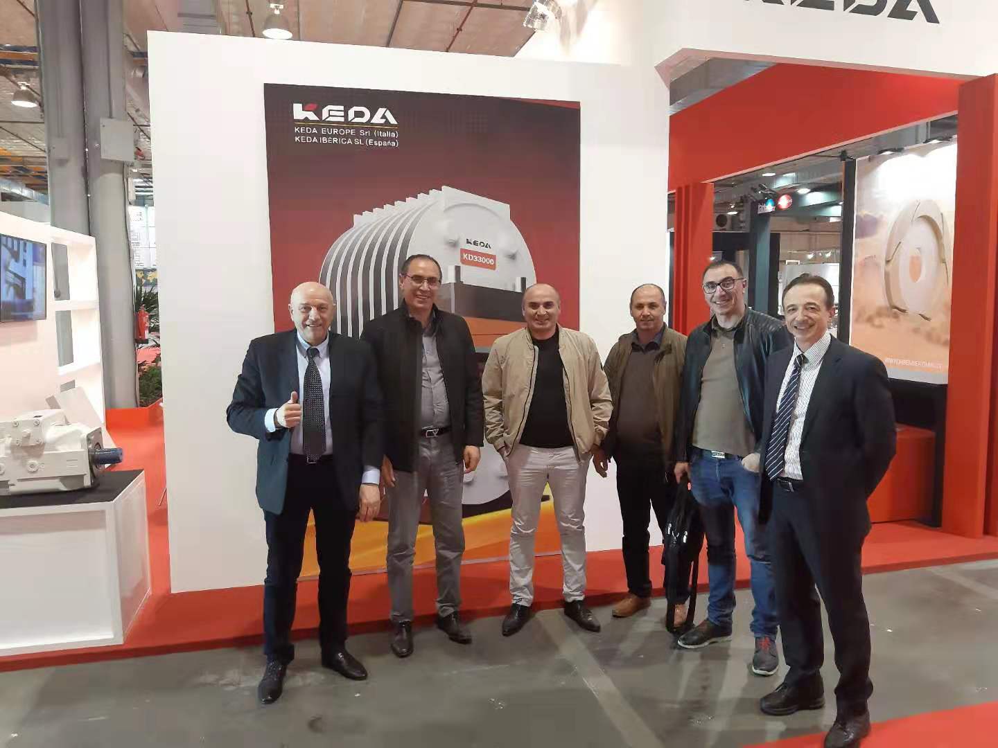 來自阿爾及利亞、土耳其、伊拉克、巴基斯坦等國家的老客戶紛紛到科達展位了解科達最新產(chǎn)品,他們很高興看到科達歐洲的存在,并期望未來科達能夠就近為其提供更好的服務。來自歐洲的客戶則對科達的透水磚生產(chǎn)線表示了濃厚興趣,此外,前來科達展位洽談的一些西班牙客戶,則有意向購買新機型替換其原有的舊壓機,并計劃引進新的磨邊線。