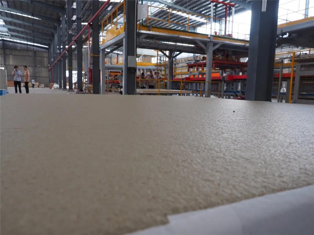 板材性能優(yōu)異。發(fā)泡陶瓷板材的平整度直接關(guān)系到終端產(chǎn)品的應(yīng)用。“首先我們在布料系統(tǒng)上進(jìn)行改進(jìn),增加了其布料的均勻性和平整性,布料完成以后,基本沒有多余的料再需要人工去修;在工藝方面,我們在工藝和燒成曲線上總結(jié)了過去的經(jīng)驗(yàn),進(jìn)行了調(diào)整,表面燒制特別平整,使表面的磨削量可以降到最低,產(chǎn)品收成率也會(huì)更高。良好的平整度還可以增加刮平機(jī)輥筒刀具的使用壽命?!笨七_(dá)研發(fā)院陶瓷工藝研究所所長林智指出。