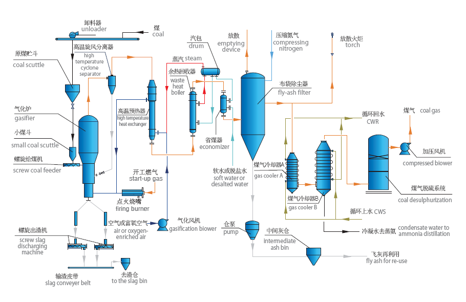 安徽科達(dá)潔能股份有限公司承建的煤制氣裝置主要是為國(guó)城公司鈦白粉生產(chǎn)提供燃料氣,此次煤制氣裝置采用的是我司擁有自主知識(shí)產(chǎn)權(quán)的的清潔燃煤氣化系統(tǒng),該系統(tǒng)是基于循環(huán)流化床氣化原理開(kāi)發(fā)的一種以碎煤為原料制取煤氣的工藝,具有工藝流程短、單位產(chǎn)品投資低、清潔環(huán)保、高效節(jié)能等優(yōu)點(diǎn)。