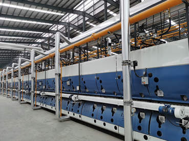 德力泰在本次合作項(xiàng)目提供的裝備有:一條全新打造的天然氣“4.0能效標(biāo)桿數(shù)智時(shí)代”燒成窯(W3100/L392.7M)、一條EM系列六層自循環(huán)干燥器及全套釉線干燥。主要生產(chǎn)800×800(mm)的雙零吸水率全拋釉磚,設(shè)計(jì)產(chǎn)量是28000m2/天。