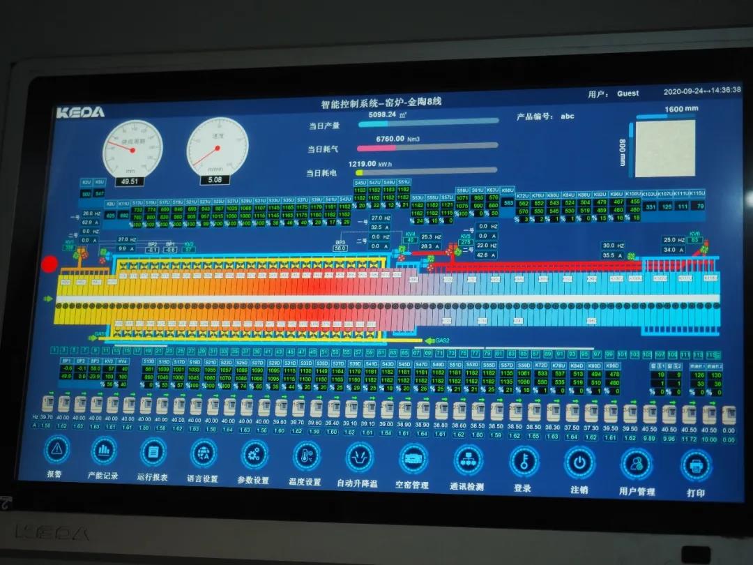 科達(dá)工業(yè)4.0+數(shù)字智能化高端巖板窯爐可生產(chǎn)的巖板規(guī)格從常規(guī)的750×1500(mm)、800×1600(mm)、900×1800(mm),到800×2600(mm)、1200×2400(mm)、1600×3600(mm);厚度從3mm到20mm,單條窯爐日產(chǎn)量根據(jù)需要高達(dá)8000-12000平方米。