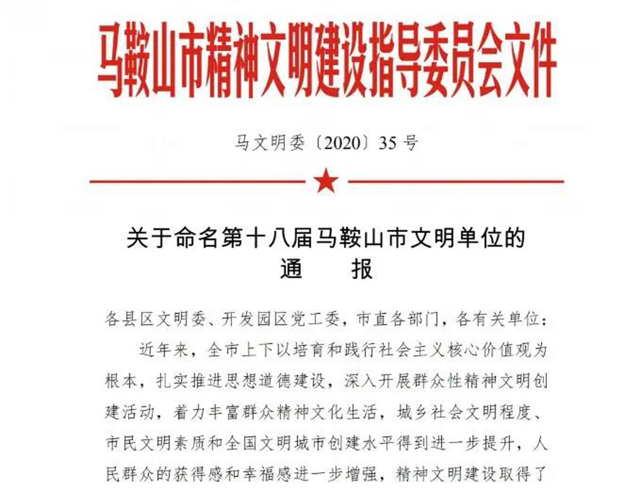 根據(jù)通報內(nèi)容,安徽科達智慧能源科技有限公司及安徽科達機電有限公司均被評為“第十八屆馬鞍山市文明單位”。
