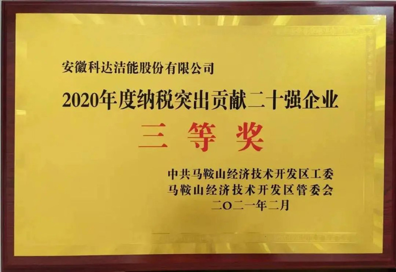 安徽科達(dá)潔能榮獲納稅突出貢獻(xiàn)二十強(qiáng)優(yōu)秀企業(yè)管理團(tuán)隊(duì)三等獎(jiǎng)、科技創(chuàng)新二十強(qiáng)優(yōu)秀企業(yè)管理團(tuán)隊(duì)。