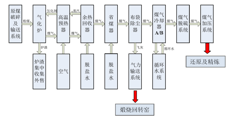 該項目采用的是安徽科達潔能自主研發(fā)的循環(huán)流化床氣化技術,項目建成后,將為云海鎂業(yè)10萬噸金屬鎂冶煉提供100000Nm3/h燃料氣。在該煤氣化裝置中,氣化系統(tǒng)副產(chǎn)飛灰將作為燃料用于回轉(zhuǎn)窯綜合再利用,這極大的提高了煤炭的綜合利用效率,同時也提高了企業(yè)的經(jīng)濟效益。