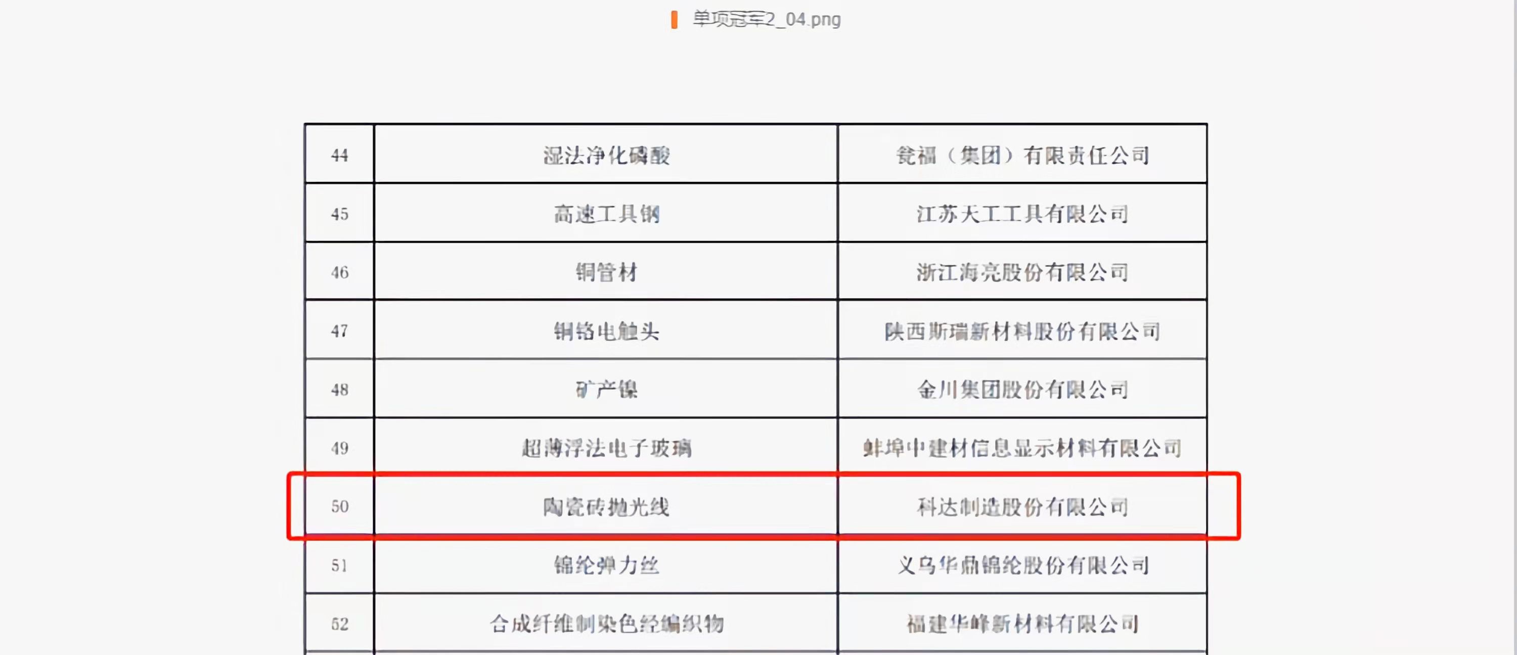 2021年11月8日-15日,國家工業(yè)和信息化部公示了第三批制造業(yè)單項(xiàng)冠軍名單,其中,科達(dá)制造股份有限公司的“陶瓷磚拋光線”榮獲“單項(xiàng)冠軍產(chǎn)品”稱號。