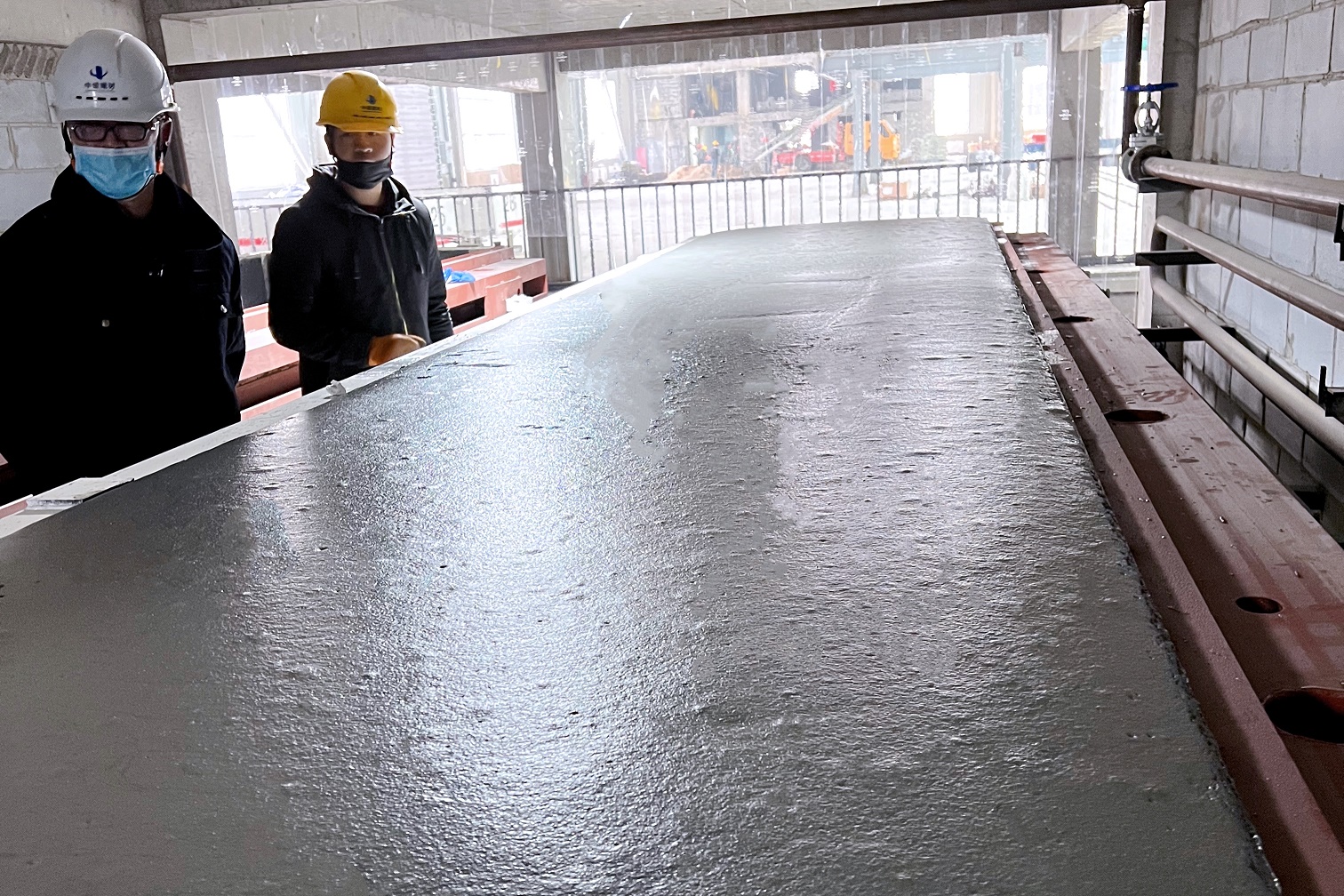 2月18日,寧夏中盛項(xiàng)目第一模料漿澆注完成并成功脫模,標(biāo)志著該項(xiàng)目正式進(jìn)入投料試產(chǎn)階段,目前現(xiàn)場(chǎng)設(shè)備運(yùn)行穩(wěn)定流暢??七_(dá)新銘豐服務(wù)團(tuán)隊(duì)正在現(xiàn)場(chǎng)積極調(diào)試,項(xiàng)目即將進(jìn)入大規(guī)模生產(chǎn)階段。