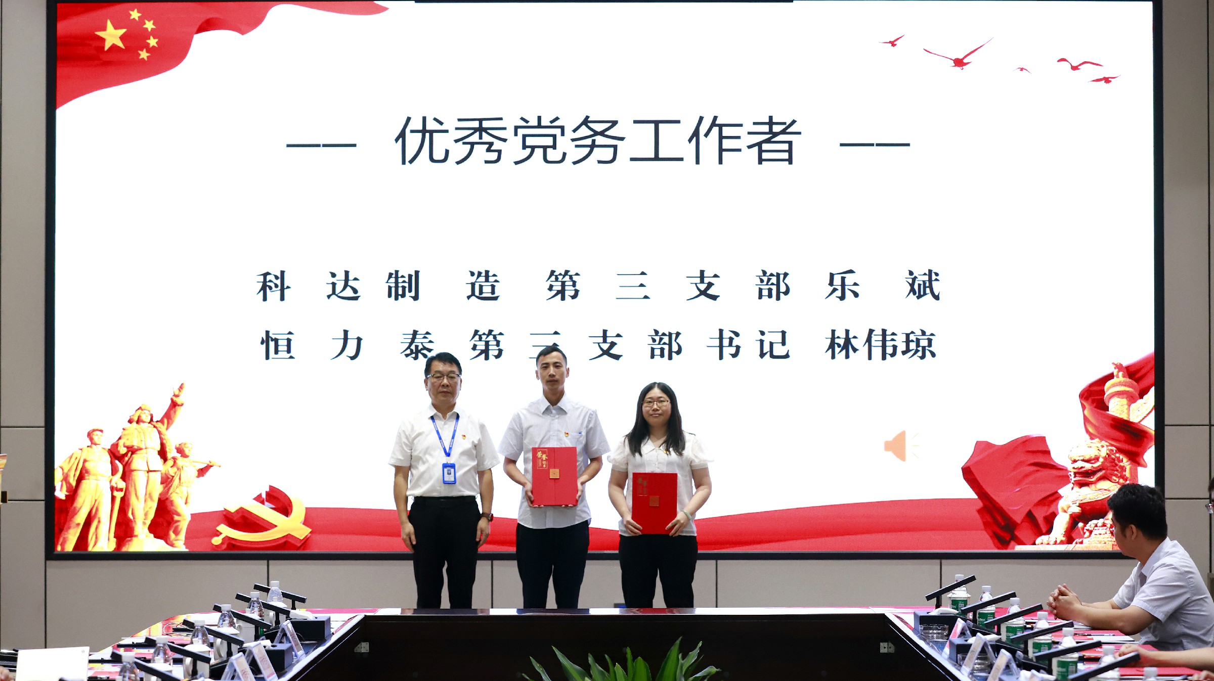 7月1日,科達(dá)制造在總部101會(huì)議室召開喜迎黨的二十大暨2022年“七一”表彰大會(huì)。公司董事長(zhǎng)邊程,黨委書記李斌,黨委副書記饒瓊,科達(dá)黨委第一、二、三、四支部,恒力泰黨總支書記、黨員,受表彰的先進(jìn)集體和先進(jìn)個(gè)人代表,以及入黨積極分子等近100人出席了大會(huì)。