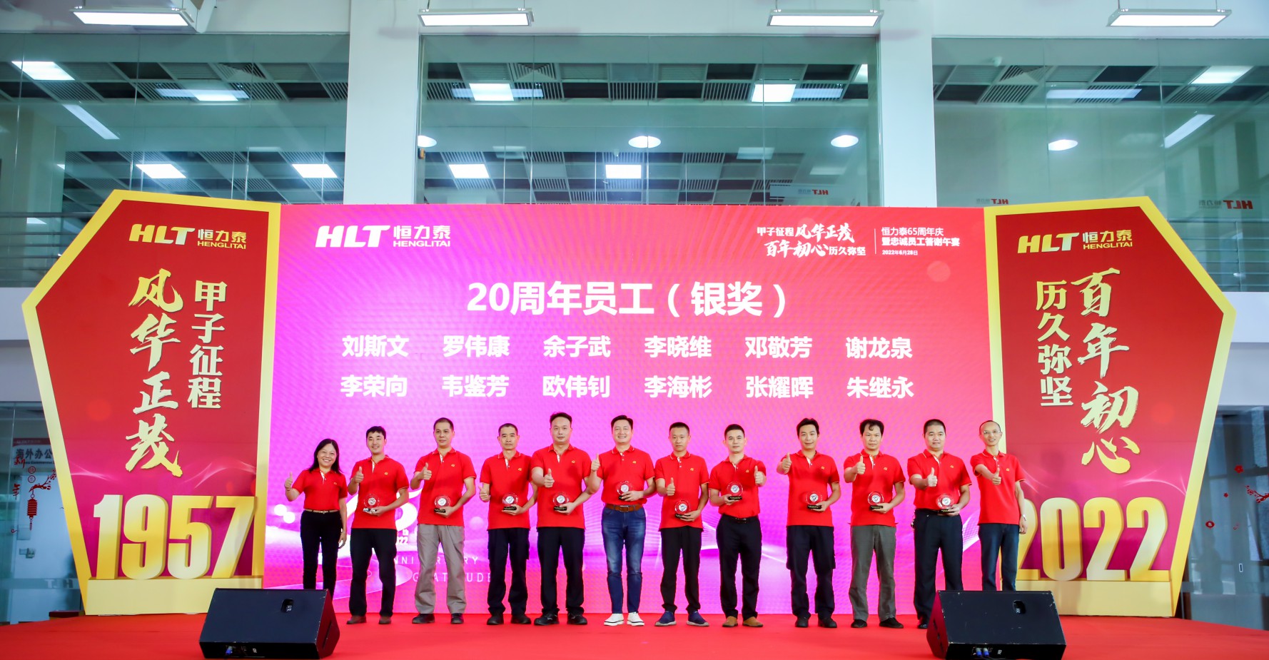恒力泰65年的輝煌離不開每一位員工的辛勤付出,領(lǐng)導(dǎo)致辭結(jié)束后進(jìn)行了忠誠員工頒獎(jiǎng)儀式,由科達(dá)制造董事長邊程、恒力泰總經(jīng)理?xiàng)顚W(xué)先和副總經(jīng)理馮瑞陽為20年以上及30年以上在職忠誠員工頒發(fā)紀(jì)念獎(jiǎng)座。其中20年以上忠誠員工63人,30年以上在職忠誠員工19人(其中5人在60周年已獲表彰),感謝大家多年來一直陪伴恒力泰砥礪前行。