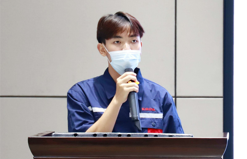 2021級機械設計1班陳國臨作為學員代表發(fā)言,他表示將以科達這個優(yōu)秀的平臺為發(fā)展起點,永葆奮斗之心、錘煉過硬本領,力爭向上、追逐夢想,一步步實現(xiàn)人生目標。