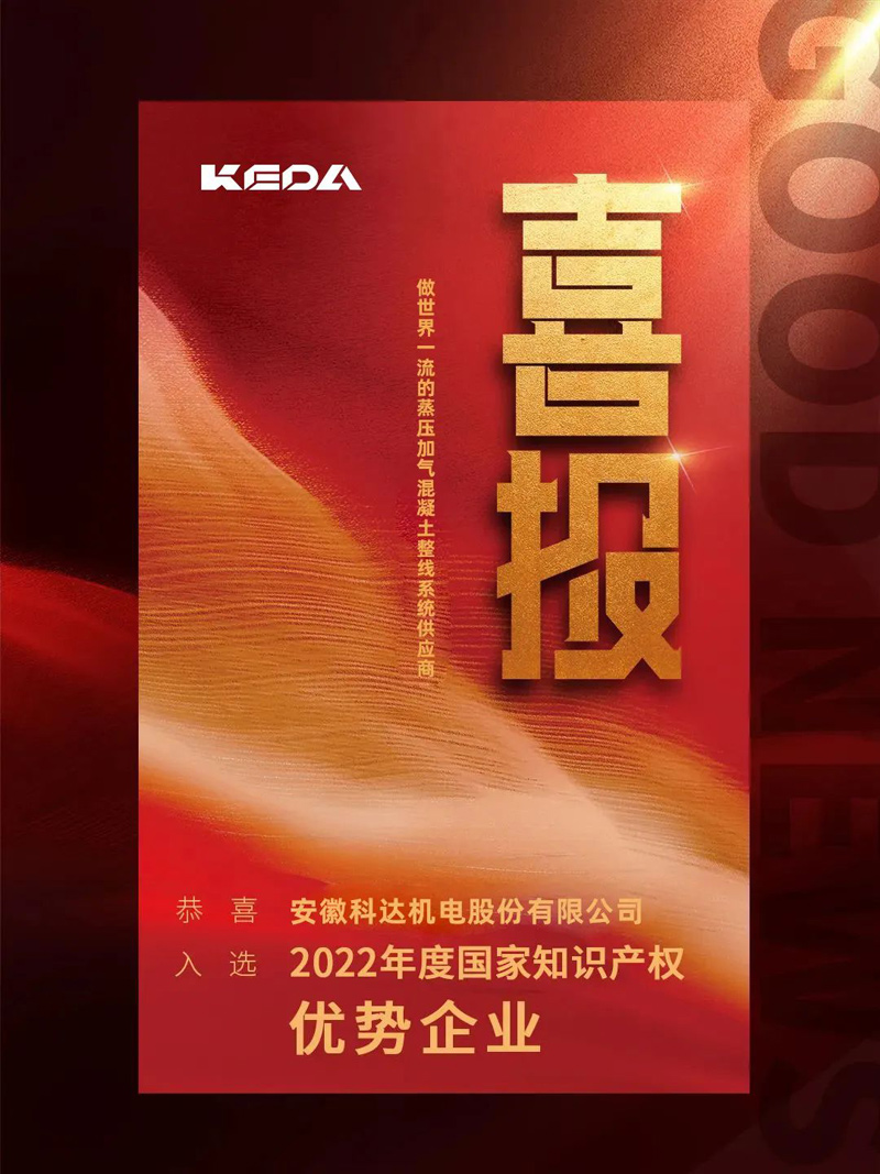 近日,國家知識產(chǎn)權(quán)局公示了2022年度國家知識產(chǎn)權(quán)優(yōu)勢企業(yè)和示范企業(yè)評定結(jié)果,安徽科達(dá)機(jī)電股份有限公司入選國家知識產(chǎn)權(quán)優(yōu)勢企業(yè)。