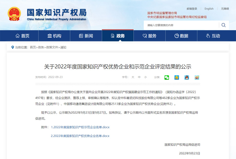 國家知識產(chǎn)權(quán)局近日公示了2022年度國家知識產(chǎn)權(quán)優(yōu)勢企業(yè)和示范企業(yè)評定結(jié)果。公告顯示,按照《國家知識產(chǎn)權(quán)局辦公室關(guān)于面向企業(yè)開展2022年度知識產(chǎn)權(quán)強(qiáng)國建設(shè)示范工作的通知》(國知辦函運(yùn)字〔2022〕497號)要求,經(jīng)企業(yè)測評、推薦上報(bào)、審核確認(rèn)等程序,安徽科達(dá)機(jī)電股份有限公司被評定為“2022年度國家知識產(chǎn)權(quán)優(yōu)勢企業(yè)”。