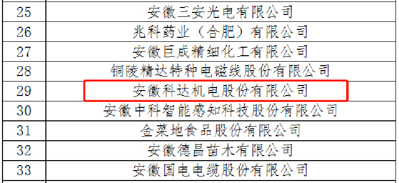 安徽科達(dá)機(jī)電入選