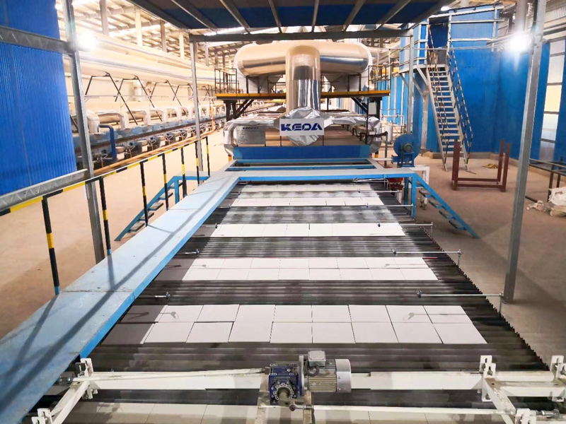 該自動(dòng)化整線應(yīng)用了包含科達(dá)60T球磨機(jī)的原料車間整套裝備、4臺(tái)KD3208壓機(jī)、窯前儲(chǔ)坯器、高效節(jié)能智能寬體輥道窯以及施釉線,科達(dá)陶瓷技術(shù)公司提供了球石、球襯和工藝服務(wù)等在內(nèi)的整體解決方案。