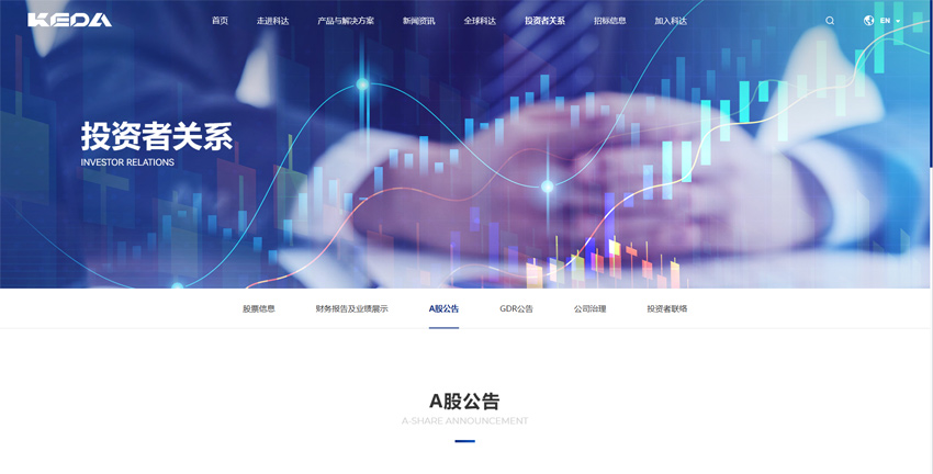 ▲科達(dá)制造官網(wǎng)開設(shè)“投資者關(guān)系”欄目