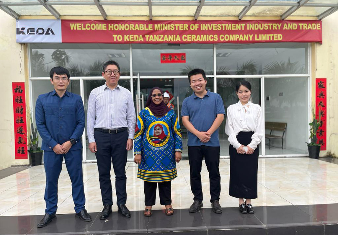近日,坦桑尼亞貿(mào)工部部長Ashatu Kijaji女士一行到訪科達坦桑尼亞陶瓷。森大新項目籌備中心總監(jiān)于善凱、科達坦桑尼亞陶瓷總經(jīng)理張萬、森大坦桑尼亞貿(mào)易總經(jīng)理張琦等陪同參觀。