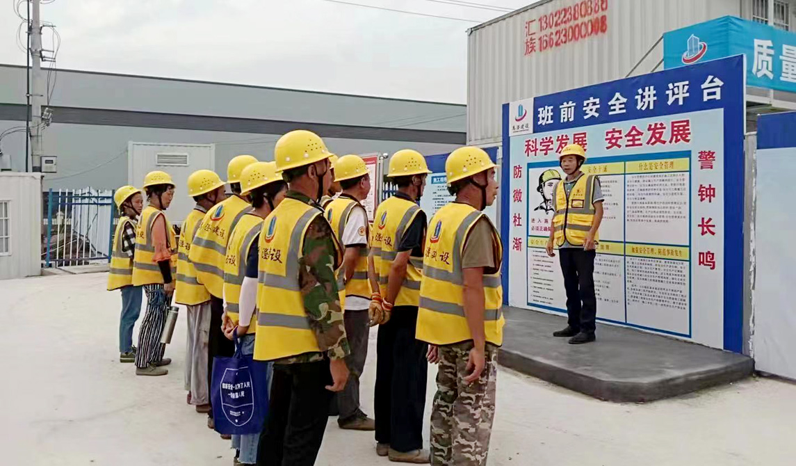 ▲管理團(tuán)隊在施工現(xiàn)場開展安全學(xué)習(xí)