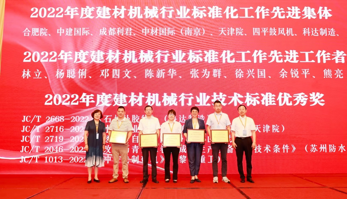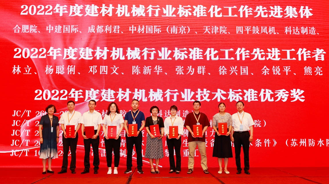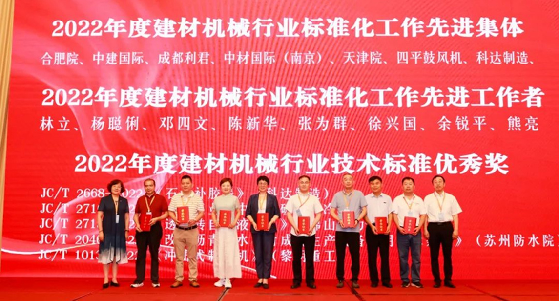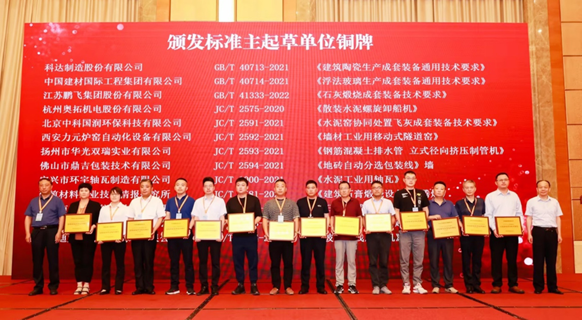 會上,標(biāo)委會副主任委員、中國加氣混凝土協(xié)會秘書長張思成宣讀了《關(guān)于表彰“2022年度全國建材機(jī)械行業(yè)標(biāo)準(zhǔn)化工作先進(jìn)集體、先進(jìn)工作者和優(yōu)秀技術(shù)標(biāo)準(zhǔn)獎”的決定》,科達(dá)制造、恒力泰、德力泰、安徽科達(dá)機(jī)電四家公司榮獲“2022年度全國建材機(jī)械行業(yè)標(biāo)準(zhǔn)化工作先進(jìn)單位”;科達(dá)制造李紹勇、袁金波、章陳、陳強(qiáng)波,恒力泰葉松君、余銳平,德力泰熊亮,安徽科達(dá)機(jī)電陸潔、齊國良、唐娟榮獲“2022年度全國建材機(jī)械行業(yè)標(biāo)準(zhǔn)化工作先進(jìn)工作者”;科達(dá)制造起草的行業(yè)標(biāo)準(zhǔn) JC/T 2668-2022《石材補(bǔ)膠線》,榮獲“建材機(jī)械行業(yè)技術(shù)標(biāo)準(zhǔn)優(yōu)秀獎”。與此同時,國家標(biāo)準(zhǔn)化主管領(lǐng)導(dǎo)還為標(biāo)準(zhǔn)GB/T 40713-2021《建筑陶瓷生產(chǎn)成套裝備通用技術(shù)要求》的主起草單位科達(dá)制造頒發(fā)了榮譽(yù)證書。