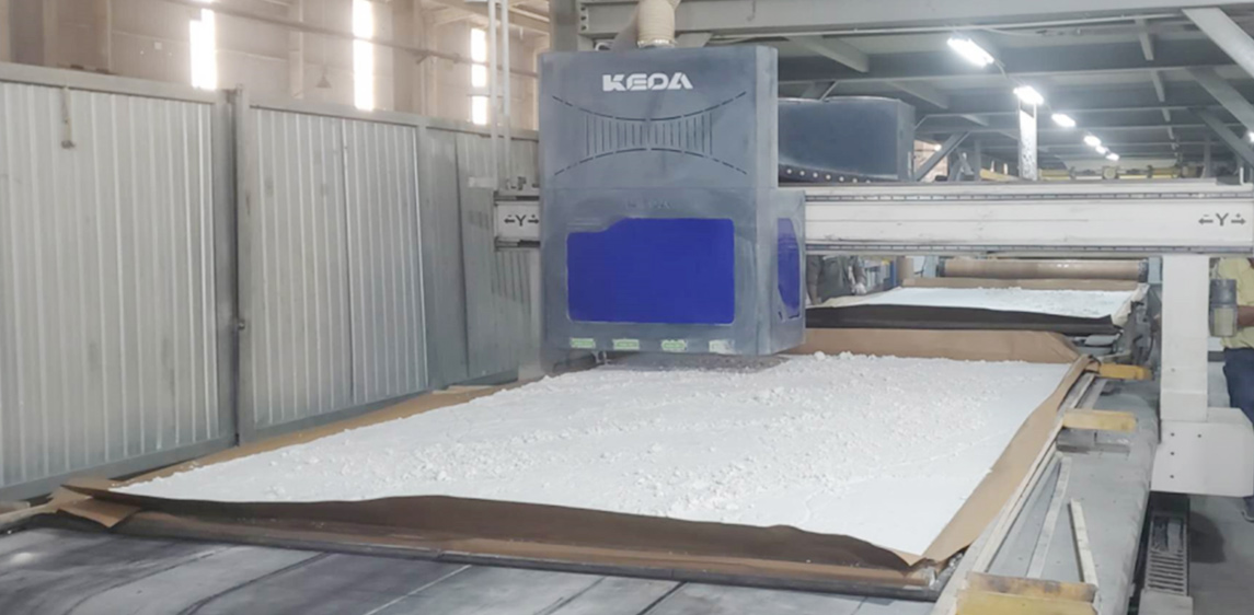 如0728人造崗石整線項(xiàng)目及0901人造石英板整線項(xiàng)目,均是在疫情期間國內(nèi)發(fā)貨,由印度本土團(tuán)隊(duì)在現(xiàn)場安裝調(diào)試,最終交付客戶使用。尤其是0901人造石英板整線項(xiàng)目,由于涉及到生產(chǎn)工藝復(fù)雜的線紋和魚肚白產(chǎn)品,中方團(tuán)隊(duì)通過視頻遠(yuǎn)程協(xié)助印度本土團(tuán)隊(duì)安裝調(diào)試,在雙方的共同合力下,在合同約定期限內(nèi)順利完成項(xiàng)目的安調(diào)。去年10月份實(shí)現(xiàn)試產(chǎn)的該項(xiàng)目,當(dāng)前設(shè)備運(yùn)行正常,已生產(chǎn)超過12000張板材(約9萬平方米)。