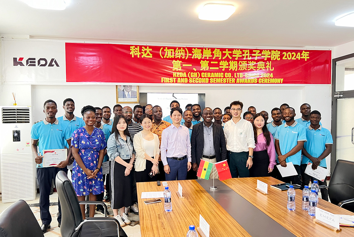日前,科達(加納)陶瓷廠與海岸角大學(xué)孔子學(xué)院共同舉辦了2024年漢語課程的頒獎典禮,4名優(yōu)秀學(xué)員獲頒中國大使館提供的大使獎學(xué)金。該典禮由加納陶瓷廠人力資源部組織,科達(加納)陶瓷廠總經(jīng)理李偉、海岸角大學(xué)孔子學(xué)院外方院長OFORI、老師賈東子、EMEFA作為特邀嘉賓出席了典禮。