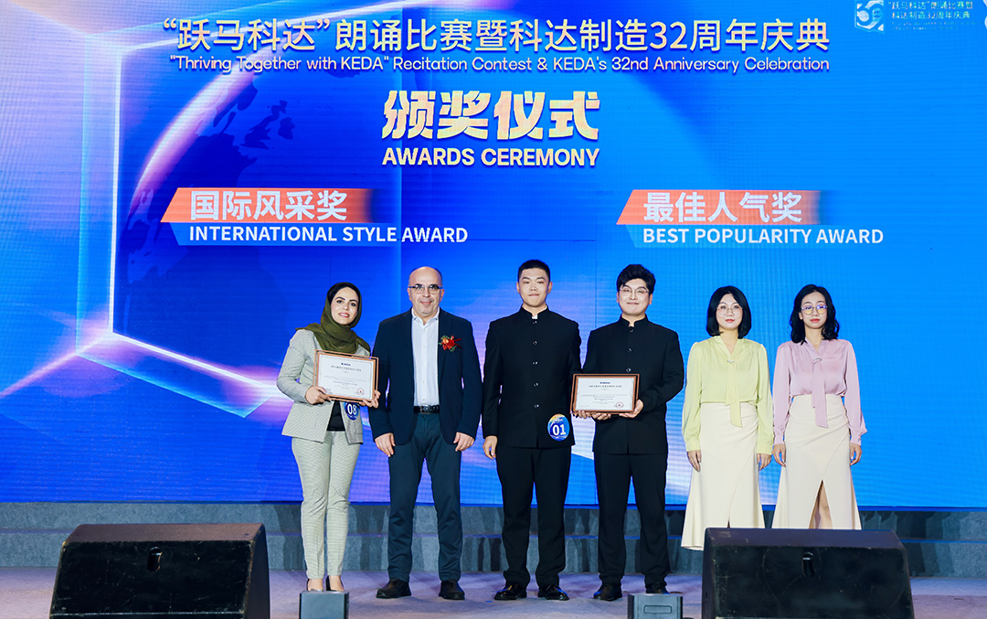 “最佳人氣獎”由科達陶機配件服務(wù)事業(yè)部&成型機械事業(yè)部組合(雷星宇、王文奇、李龍、官艷麗)摘得,“國際風(fēng)采獎”花落科達陶機國際營銷中心的Mohadese。