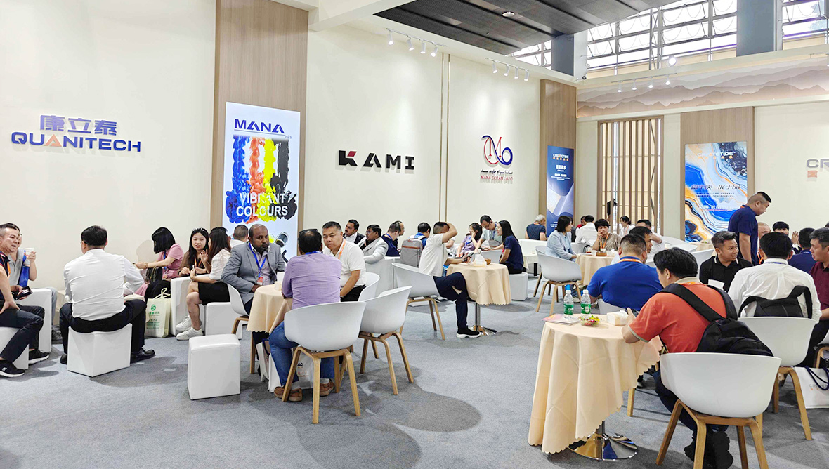 在本屆展會上,廣東康立泰以大量木結(jié)構(gòu)設(shè)計(jì)融合山水畫,加上大面積融合最新工藝的中島型瓷磚展臺,將古典與現(xiàn)代相融合,吸引了來自印度、東歐、阿爾及利亞、巴西、奧地利、捷克等近30個(gè)國家和地區(qū)的全球客商云集康立泰展位打卡交流,詳細(xì)了解前沿工藝技術(shù),擘畫美好未來。