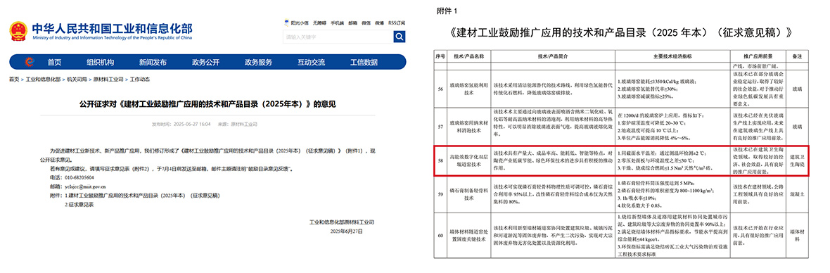 德力泰“高能效數(shù)字化雙層輥道窯”入選工信部推廣目錄