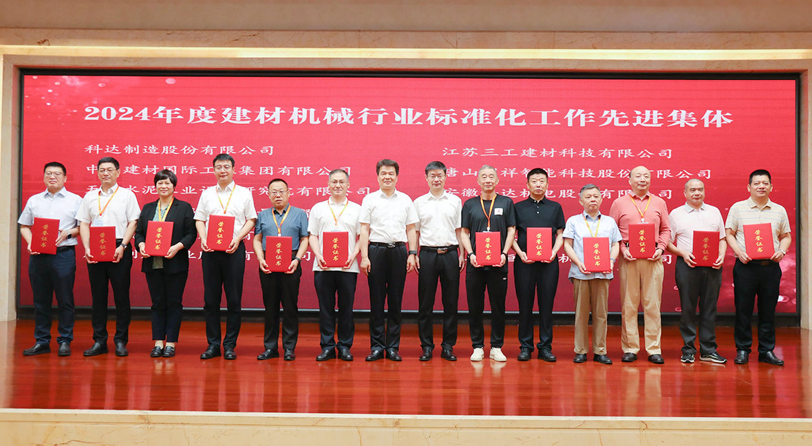 其中,科達制造、恒力泰機械、德力泰科技、安徽科達機電同獲“2024年度建材機械行業(yè)標(biāo)準(zhǔn)化先進集體”;恒力泰機械溫怡彰等多人榮獲“2024年度建材機械行業(yè)標(biāo)準(zhǔn)化先進工作者”;科達制造主起草的《JC/T 2871-2025石板材定厚機》、《JC/T 2870-2025人造石板壓機》,以及安徽科達機電主起草的《JC/T 921-2023蒸壓加氣混凝土設(shè)備切割機組》三項行業(yè)標(biāo)準(zhǔn)榮獲“2024-2025年建材機械行業(yè)技術(shù)標(biāo)準(zhǔn)優(yōu)秀獎”。
