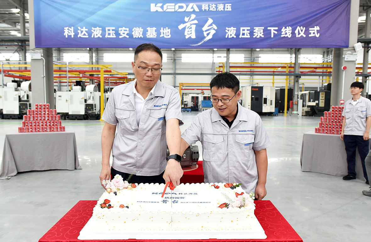 隨后,在全場矚目下,科達液壓總經(jīng)理陳孝輝和常務(wù)副總經(jīng)理劉正富共同為首臺液壓泵揭幕。此次下線的K4V200液壓泵是科達液壓廣受市場歡迎的產(chǎn)品。該產(chǎn)品凝結(jié)了研發(fā)技術(shù)團隊的智慧與汗水,從設(shè)計到生產(chǎn)全流程彰顯了科達液壓“精益求精”的匠心精神,是公司核心研發(fā)與制造實力的集中體現(xiàn)。儀式最后,陳總和劉總與全體員工共同分享象征著成功與喜悅的蛋糕,期望科達液壓的未來更加甜蜜與美好。