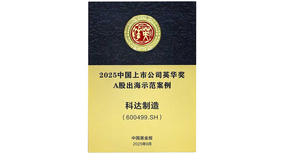 實至名歸!科達制造入選2025中國上市公司英華獎A股出海示范案例