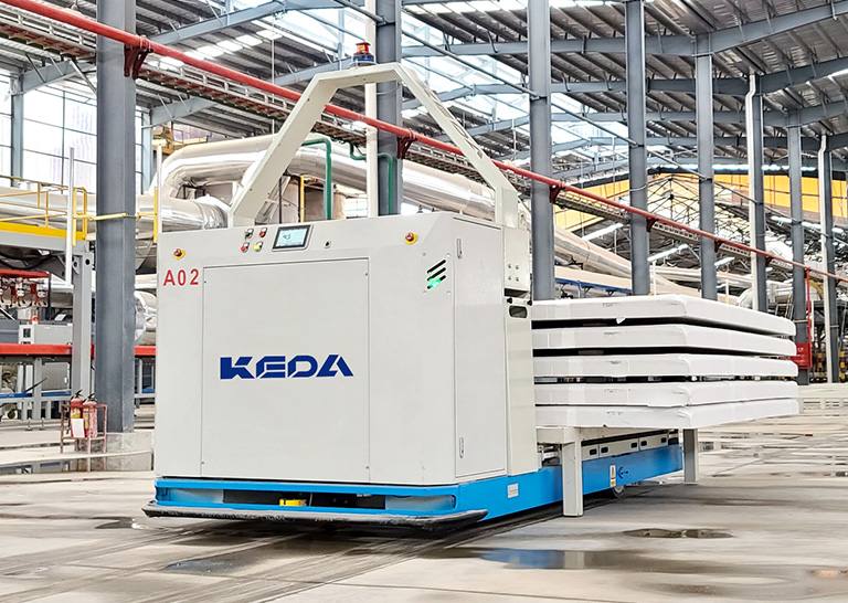 隨著人工成本的增加及人工操作破損率的居高不下,儲磚及包裝前分級實現(xiàn)自動化是必然需求,隨著陶瓷廠的生產(chǎn)線智能化的要求越來越高,儲磚線必然向智能化發(fā)展??七_(dá)智能倉儲事業(yè)部研發(fā)、生產(chǎn)的儲磚線采用智能化、柔性化生產(chǎn)。利用自主開發(fā)的上位調(diào)度系統(tǒng)控制設(shè)備的自動化,實現(xiàn)無人化操作。