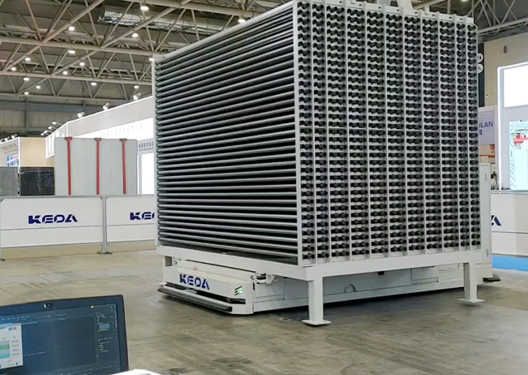 為了解決不同品種瓷磚混存的問題,科達針對需要頻繁轉換瓷磚花色品種的柔性生產(chǎn)需求,提出了柔性儲坯模式的概念。此種模式下,整個轉產(chǎn)過程不需要人來控制儲坯器將轉產(chǎn)前品種全部清空,層架式儲坯器依然按照先進先出的原則出磚,逐漸將轉產(chǎn)前品種替換為轉產(chǎn)后品種瓷磚。視覺分檢系統(tǒng)將轉產(chǎn)過程中混燒的產(chǎn)品進行區(qū)分。兩種產(chǎn)品由不同下磚機進行下磚,再由儲磚系統(tǒng)存放至不同軌道。整個轉產(chǎn)過程無需人工分檢且不會產(chǎn)生空檔期。此外,可根據(jù)不同的作業(yè)環(huán)境,選用直聯(lián)或斷開模式。實現(xiàn)空間最大利用率和周轉率。