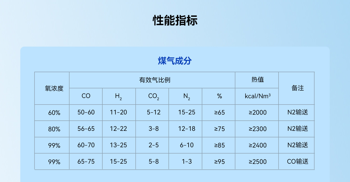 采用空氣氣化和富氧氣化,為有色冶金、建材、焦化等行業(yè)提供燃料氣,也可為合成氨、甲醇、煤制氫等行業(yè)提供原料氣。