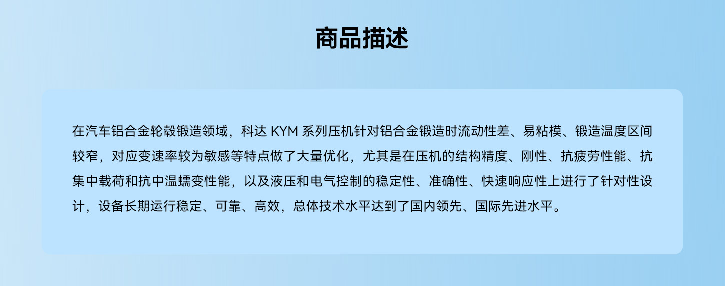 ◎ 采用纏繞機(jī)架,高合金鍛造無缸底主缸。機(jī)架和主缸的疲勞壽命相比焊接機(jī)架帶底油缸結(jié)構(gòu)大幅提高。密封件大部分選用進(jìn)口特瑞堡品牌, 管路選用精密無縫鋼管,滲漏油隱患極低??稍跇?biāo)稱滿載壓力下長年穩(wěn)定運(yùn)行。 ◎ 主要液壓、電氣元件、傳感器選用力士樂、阿托斯、賀德克、西門子、施耐德、巴魯夫等一線品牌。 ◎ 液壓站動(dòng)力源全部采用伺服電機(jī),特別適合輪轂鍛造的間隙等料工況。 ◎ 控制系統(tǒng)采用伺服比例控制,具有極好的穩(wěn)定性、可調(diào)性、準(zhǔn)確性、快速響應(yīng)性。 ◎ 選用加強(qiáng)版液壓系統(tǒng)配置的輪轂鍛造線生產(chǎn)速度單件小于 45 秒。 ◎ 針對輪轂鍛造工藝中的使用、維護(hù)習(xí)慣對壓機(jī)的人機(jī)界面、壓機(jī)結(jié)構(gòu)、常用設(shè)施等進(jìn)行了針對性優(yōu)化設(shè)計(jì)。售后服務(wù)網(wǎng)點(diǎn)覆蓋 60 多個(gè)國家與地區(qū), 技術(shù)服務(wù)工程師 24 小時(shí)內(nèi)快速響應(yīng)。