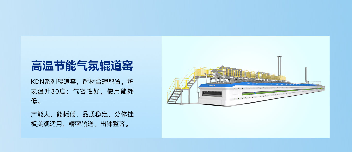 KDN系列輥道窯,耐材合理配置,爐表溫升30度;氣密性好,使用能耗低; 產能大,能耗低,品質穩(wěn)定,分體掛板美觀適用,精密輸送,出缽整齊。