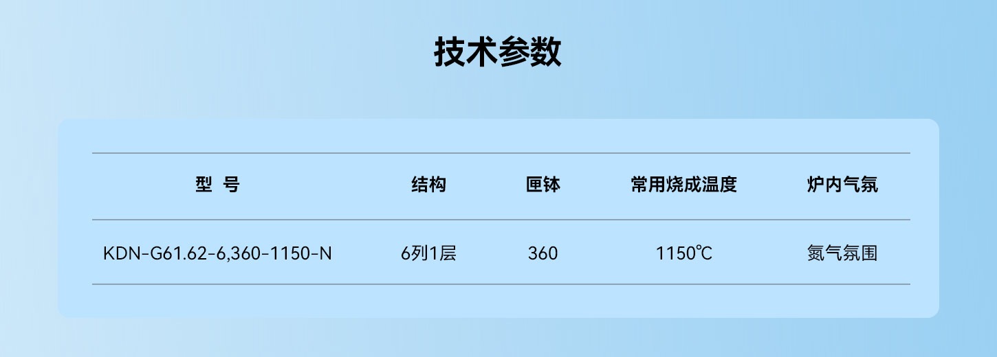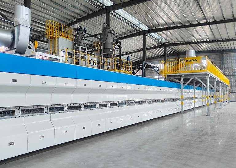 KDN系列輥道窯,耐材合理配置,爐表溫升30~40度;氣密性強(qiáng),正常生產(chǎn)氧濃度20ppm以下;使用能耗低,能耗比上一代產(chǎn)品降低約30%; 產(chǎn)能大,能耗低,品質(zhì)穩(wěn)定,分體掛板美觀適用,精密輸送,出缽整齊。