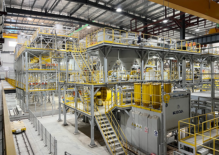 廣西來賓無機(jī)崗石生產(chǎn)線是國內(nèi)首條無機(jī)崗石全自動(dòng)智能生產(chǎn)線,核心亮點(diǎn)為引入科達(dá)制造成熟的智能管控系統(tǒng)。該系統(tǒng)結(jié)合石材特性深度開發(fā),集成物聯(lián)網(wǎng)、大數(shù)據(jù)、云計(jì)算等新一代信息技術(shù),打通管理流程、生產(chǎn)、設(shè)備、質(zhì)量、能源、成本等全業(yè)務(wù)鏈,實(shí)現(xiàn)精益管理,驅(qū)動(dòng)企業(yè)信息化、智能化轉(zhuǎn)型與管理變革,引領(lǐng)行業(yè)升級,并夯實(shí)海外市場拓展基礎(chǔ)。